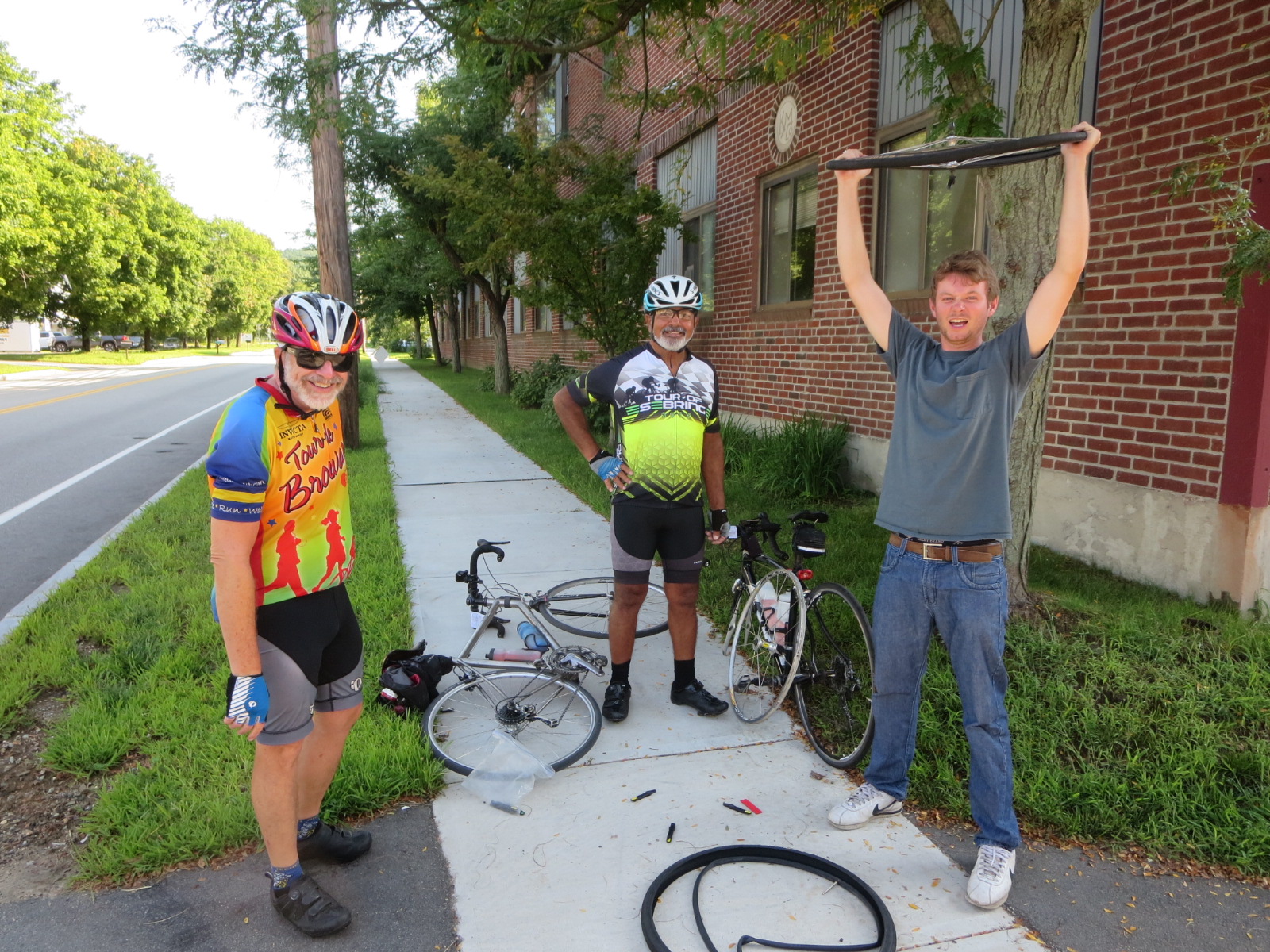 Previous Image Next Image 40C095B8-FDE9-4301-AB85-2A5138AB6AB6 Uh, oh. Satish has a busted spoke. Good thing Robin is nearby to fix it, and Hugh is there to oversee the operation.