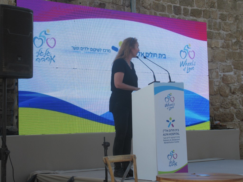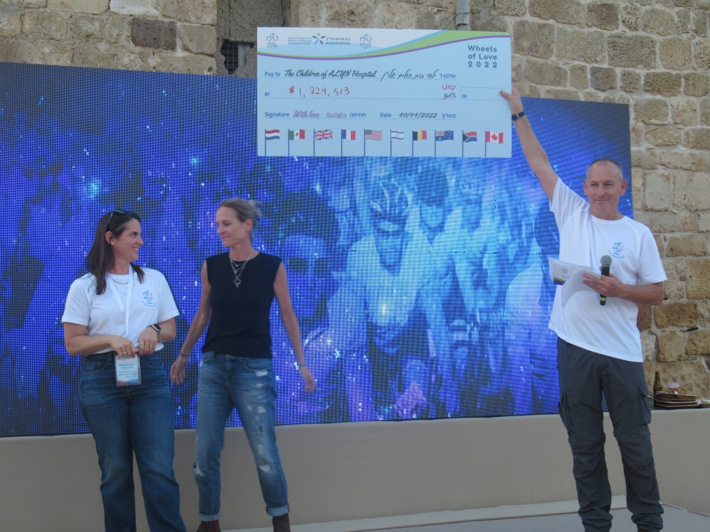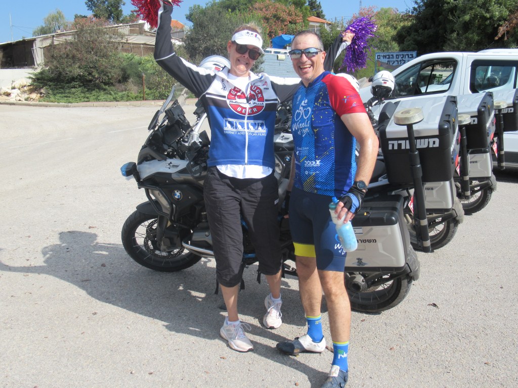 The fabulous Leah Goldstein and Israeli pro-cyclist Guy Niv, joined the Children of ALYN to thank everyone – riders and sponsors – for a fabulous Wheels of Love!